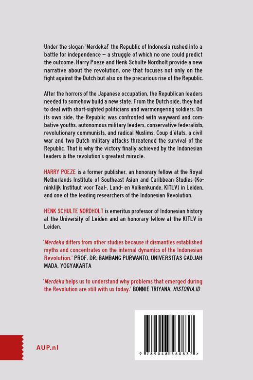 Under the slogan ‘Merdeka!’, the Republic of Indonesia rushed into a battle for independence – a struggle whose outcome no one could predict. Harry Poeze and Henk Schulte Nordholt provide a new narrative about the revolution, focusing not only on the fight against the Dutch but also on the precarious rise of the Republic.”
