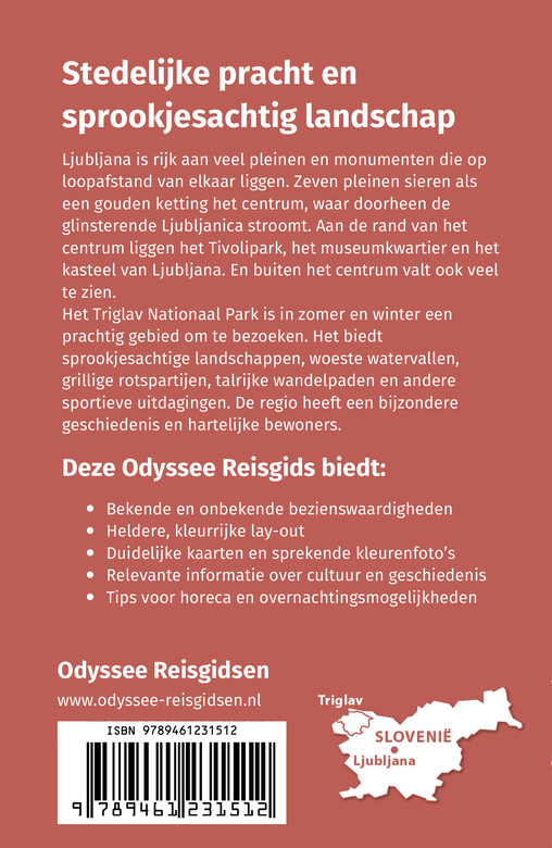 Ljubljana is rijk aan veel pleinen en monumenten die op loopafstand van elkaar liggen. Zeven pleinen sieren als een gouden ketting het centrum, waar doorheen de glinsterende Ljubljanica stroomt. Aan de rand van het centrum liggen het Tivolipark, het museumkwartier en het kasteel van Ljubljana. En buiten het centrum valt ook veel te zien.